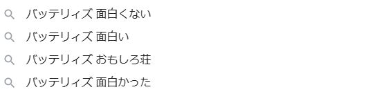 バッテリィズさんを検索すると、「面白くない」というワードが出ていきます。
