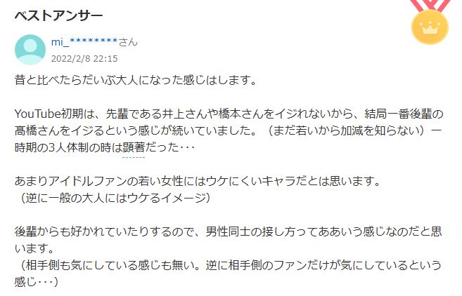 このストレートな発言が生意気と受け取られやすいと言われています。