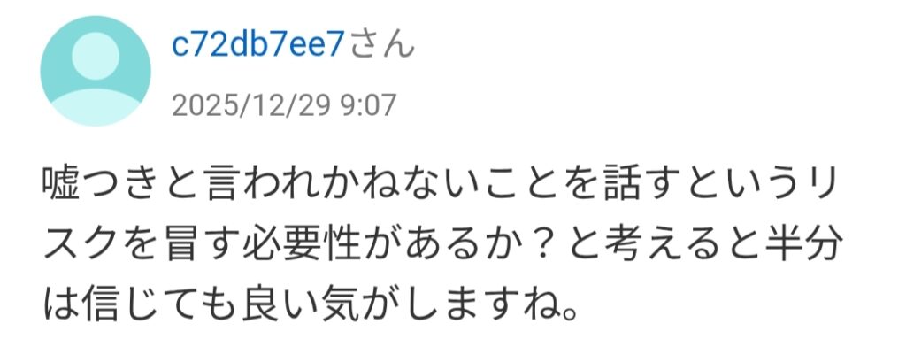 特に、複数人の体験談が妙にリンクしていることから、