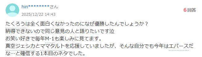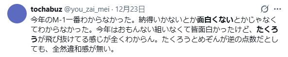 「優勝レベルじゃない」「他のコンビの方が笑えた」