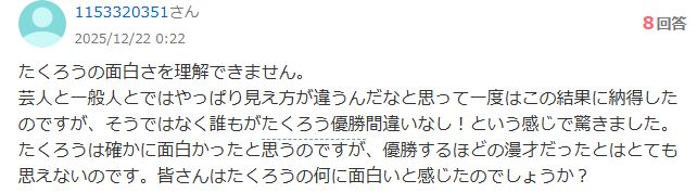 たくろうはまさに好みが分かれるタイプの芸人と言えそうです。